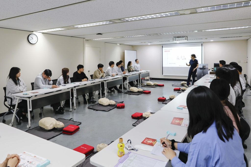 그간 외부 교육장에서 진행돼 오던 심폐소생술 교육은 올해 처음으로 서울 잠원동 본사에서 실시됐다. 보다 많은 임직원이 교육에 참여할 수 있도록 접근성과 참여율을 고려한 조치로, 교육은 오전과 오후 두 차례에 걸쳐 운영됐다.