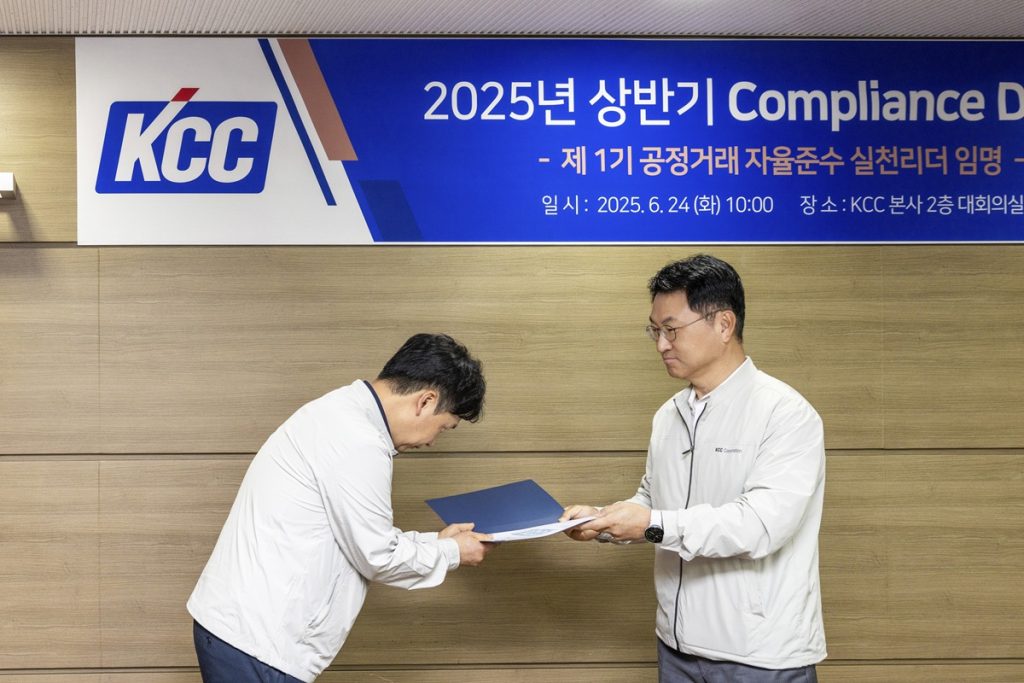 지난 6월 24일, KCC는 ‘2025 상반기 Compliance Day’를 개최하고 사내 자율준수 실천 의지를 한층 더 단단히 다지는 자리를 마련했다. 이 행사는 대표이사의 주관 하에 구성원들이 Compliance Program(이하 CP)에 더욱 적극적으로 참여하고, 공정거래 관련 법령의 위반 리스크를 줄이기 위해 기획된 것이다.